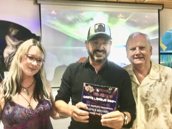 De populaire donderdagdartscompetitie sloot het seizoen vorige week af met een prijsuitreiking. Jayne Leggatt, algemeen directeur van Serenity Insurance, en voormalig professioneel wereldkampioen darten Rod Harrington reikten de prijzen uit. Een publiek van meer dan 150 mensen werd anderhalf uur lang getrakteerd op tafelmagie van de beroemde Graeme Mikal en een meer dan uitgebreid buffet uit de keuken van Los Cucalos.